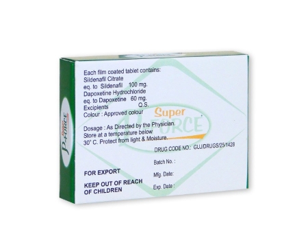 Formlen af lægemidlet er unik i den forstand, at den indeholder to forskellige aktive stoffer i stedet for en, som virker parallelt. På grund af den nye kombination af Sildenafil/Dapoxetine (100 mg/60 mg) henvises Super P Force til en separat klasse af lægemidler.